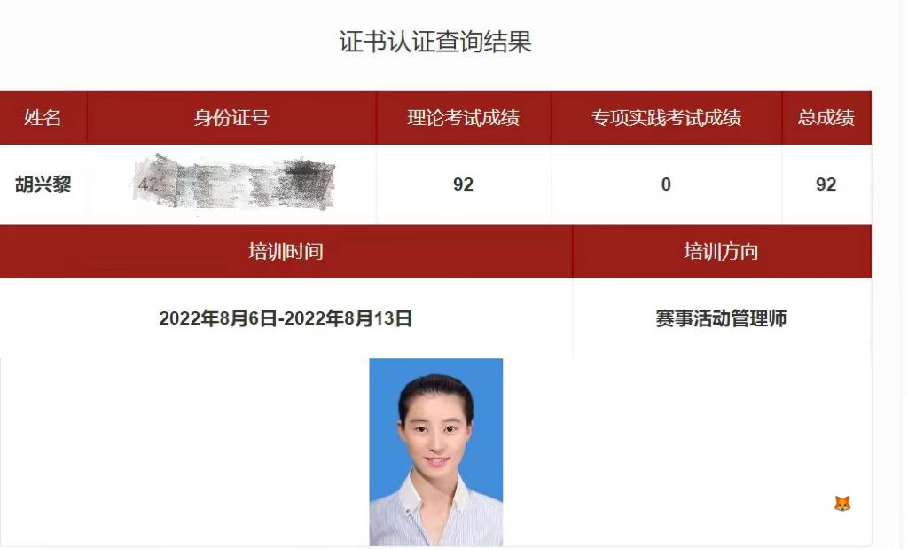 由国家体育总局体育文化发展中心测评的2022年第二期赛事活动管理师培训班于8月6日至13日在山西太原举行。本次培训采用线上直播+线下授课相结合方式,来自全国各地的80人参加,我院教师胡兴黎参加了此次培训并顺利通过考试,考取了赛事活动管理师证书。