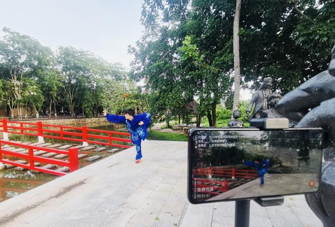 假期教师们除了忙着组队带领学生参加比赛提升技能,自己也会参加重要赛事活动不断提升自己专项能力。我院李彧杰、李红云老师假期更是高强度训练,只为在海南省第六届运动会武术比赛中争夺荣誉。