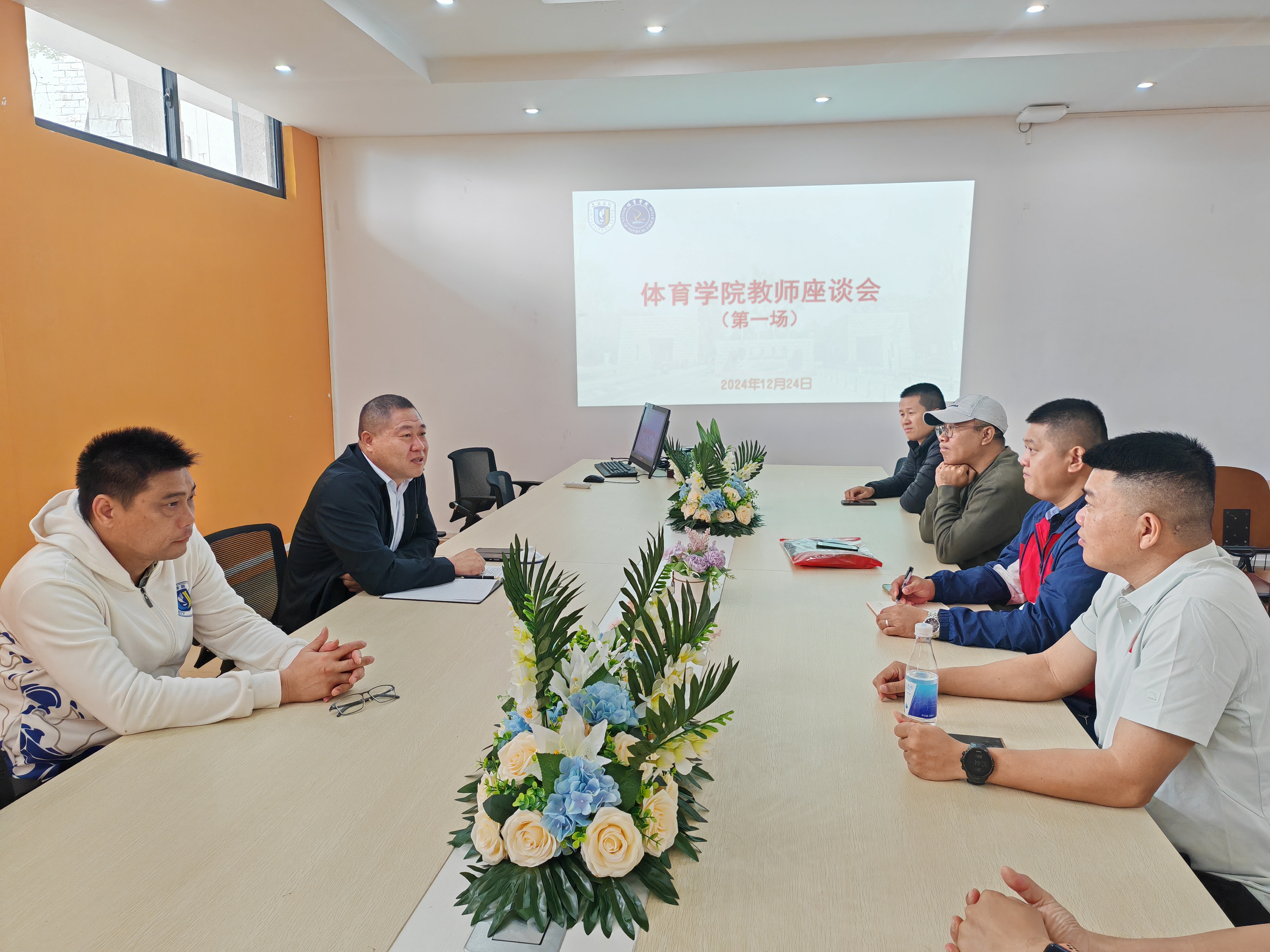 2024年12月24日,体育学院成功召开了教师座谈会(第一场),本次会议在院领导郝艳龙的主持下,聚焦于产教融合这一核心议题,旨在探索如何更好地落实产教融合,为学生创造更丰富的学习资源,并助力他们顺利走向社会。