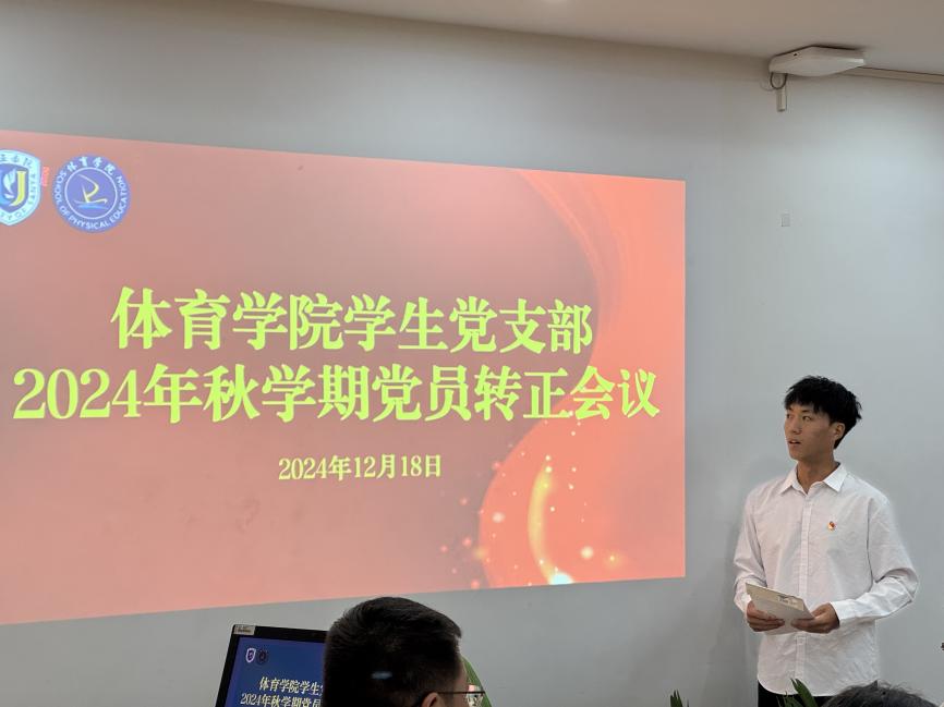 经支部大会无记名投票表决,一致同意刘志刚同学按期转为正式中国共产党党员。新转正的党员们表示,将以更高的标准严格要求自己,牢记初心使命,发挥专业特长,为体育事业发展和社会进步贡献力量,在新时代的征程中书写更加精彩的青春华章。