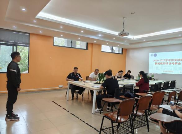 为贯彻学校相关要求和精神,检验并提升新进教师教学能力,12月18日,2024-2025学年体育学院新进教师试讲考核会在学院会议室举行。此次试讲考核会旨在评估新进教师的教学能力和专业素养,为学院的教学工作注入新的活力与力量,体育学院两位新进教师鞠梒宇、李守学参加了试讲,院领导郝艳龙、安娜,体育系副主任李晓媛及公共体育教学部副主任李江涛,院督导付英伟教授及纪志敏教授参与了此次活动并担任评委,现场气氛热烈而庄重。