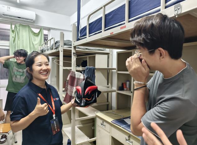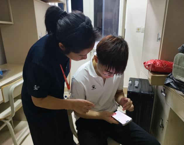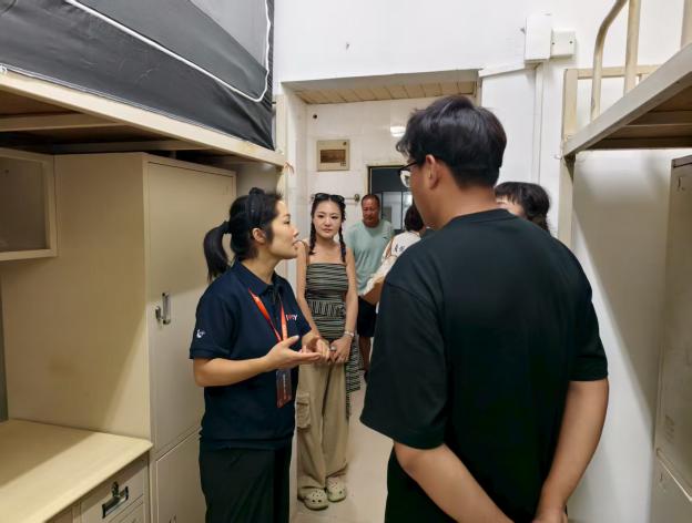 在交谈过程中,团委副书记李红云还特别关注宿舍的硬件设施情况。她仔细检查了宿舍内的水电供应是否正常,叮嘱新生们要注意用电安全,节约用水用电。针对新生们提出的关于生活用水、用电以及故障报修等后勤微服务问题,李红云老师耐心地进行解答和指导,详细介绍了相关的报修流程和服务渠道,让新生们能够快速熟悉校园生活。