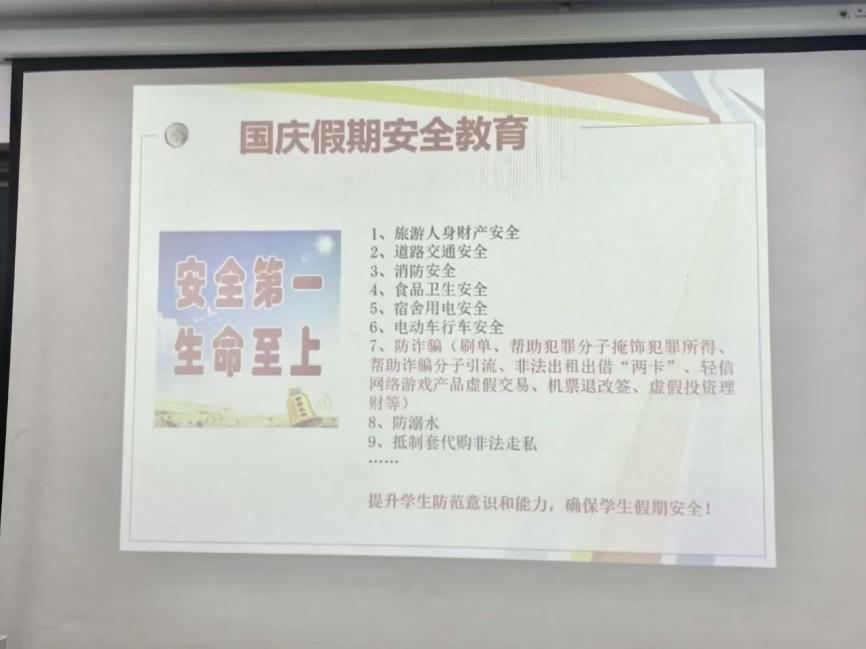 随着国庆假期的临近,假期安全教育是本次班会的重点内容。李茜莉老师首先明确了假期时间安排,并着重强调:9月28日至30日期间所有请假事项须严格遵循《学生手册》审批流程。此外,学院将加强课堂巡查与学生晚归以及不归检查,对违纪的学生依规严肃处理。在安全教育方面,李茜莉老师围绕交通安全、人身财产安全、食品安全等多项安全主题展开说明,重点提醒学生警惕刷单、虚假投资理财等常见骗局,抵制套代购非法走私行为,全面提升学生防范意识与能力。