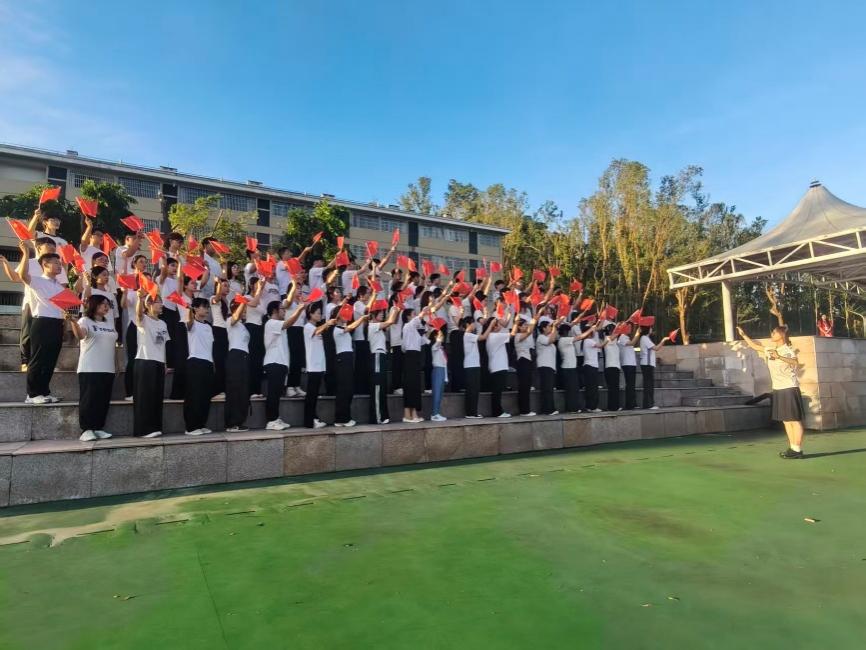 迎着晨曦的金色光芒,雄壮的国歌声在校园上空激荡回旋。鲜艳的五星红旗迎着朝阳冉冉升起,每一道褶皱都承载着历史的厚重。全体师生整齐肃立,身姿挺拔,目光坚定地凝视着国旗。在这庄严的仪式中,既有对革命先烈的深切缅怀,更涌动着新时代青年炽热的报国情怀,共同谱写了献给祖国华诞最美的晨光礼赞!