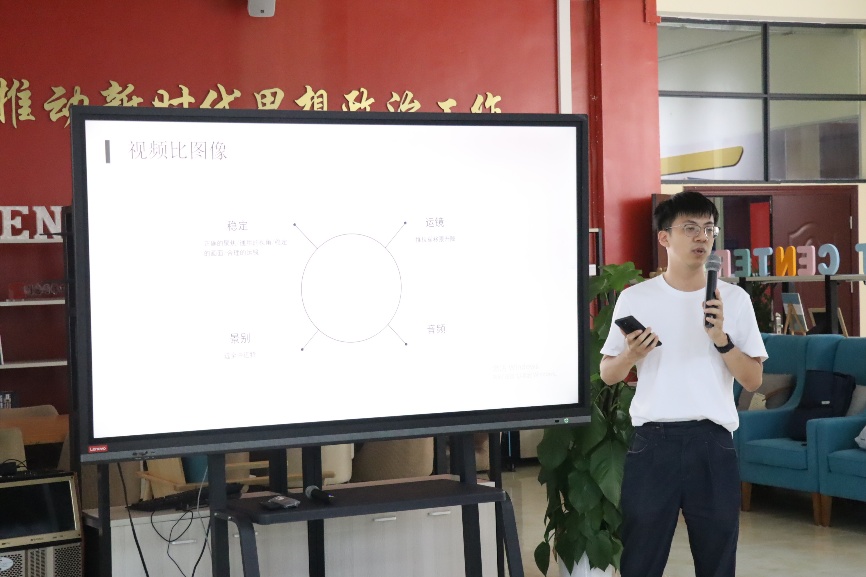 左松宁老师带来“视频摄制逻辑”的深度解析,为学员们构建了一套从原理到实践的系统认知。他从“什么是视频”入手,生动阐释了视觉暂留原理形成动态效果的本质。随后,他层层深入,系统讲解了视频构成的核心要素:始终将“稳定”置于首位,亲自演示了反手拍摄等实用稳定技巧;并逐一剖析了景别切换、运镜方式与构图美学等关键概念。在最后的拉片实战环节,左老师以一部优秀的宣传片为案例,带领学员们完整梳理了从 “选题策划—镜头语言—后期剪辑” 的完整创作链条,将理论知识与实战经验融会贯通。