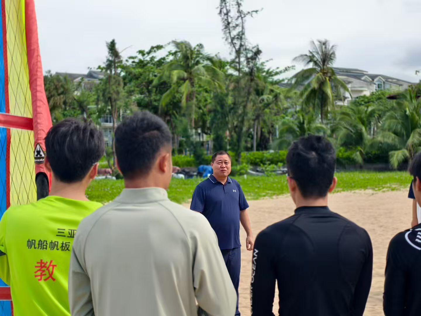 三亚市帆船帆板运动协会会长贾丹对三亚学院一行的到来表示热烈欢迎。她在发言中强调,同学们在使用专业器械时务必爱惜,并再次重申了海上训练安全的重要性。她展望道:“期待未来双方能以基地为平台,协同组建高水平的水上运动队伍,积极参与全国性赛事,真正将产教融合的理念落到实处,共同为海南水上运动事业添砖加瓦。”