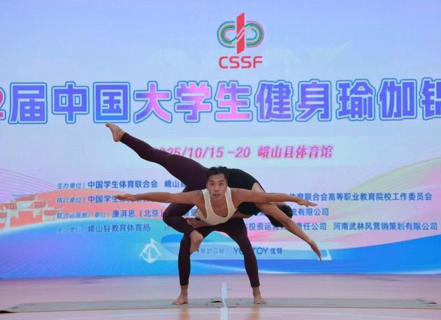 10月17日,由中国大学生体育联合会主办的第二届中国大学生健身瑜伽锦标赛在云南峨山隆重开幕。来自全国52所高校的427名大学生齐聚赛场,在柔韧与力量的平衡中诠释青春健康之美。三亚学院健身瑜伽代表队在体育学院杨旭老师带领下亮相全国赛场,凭借稳健表现与专业素养展现出沉稳心态与不断突破的成长姿态。