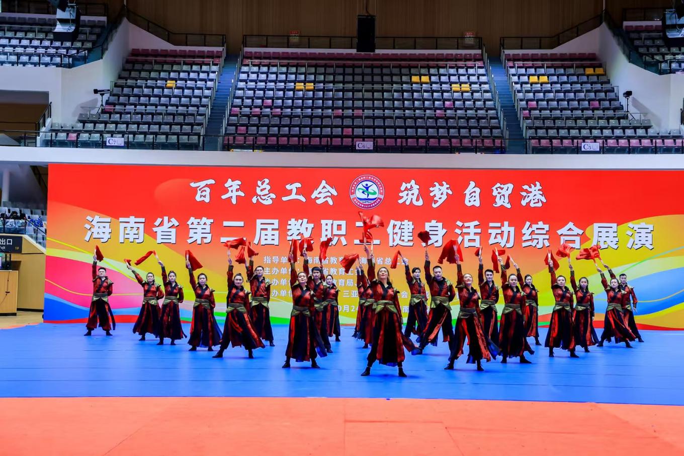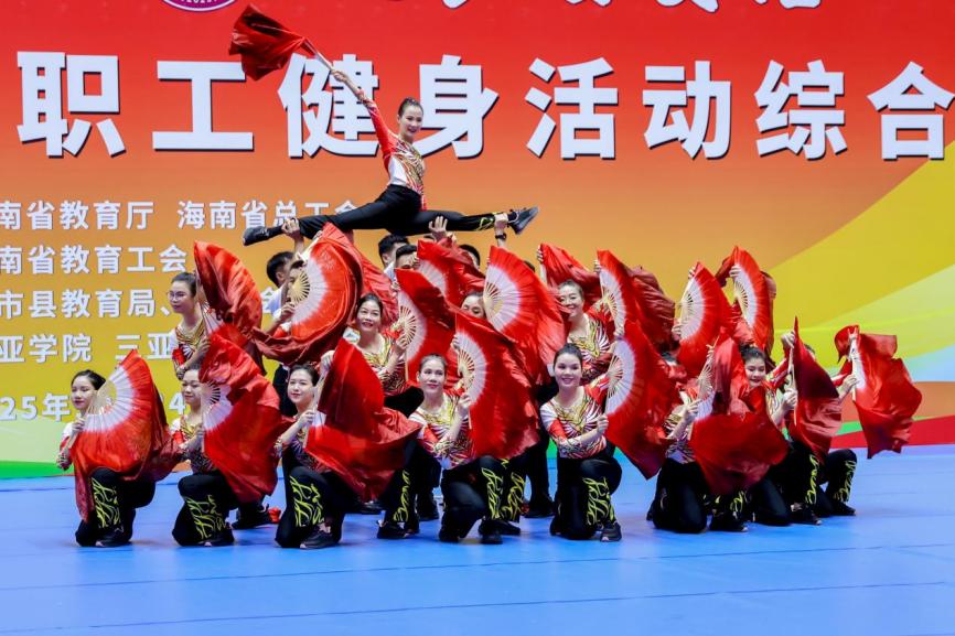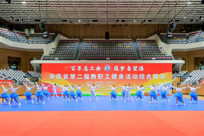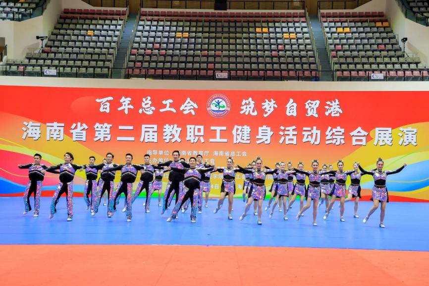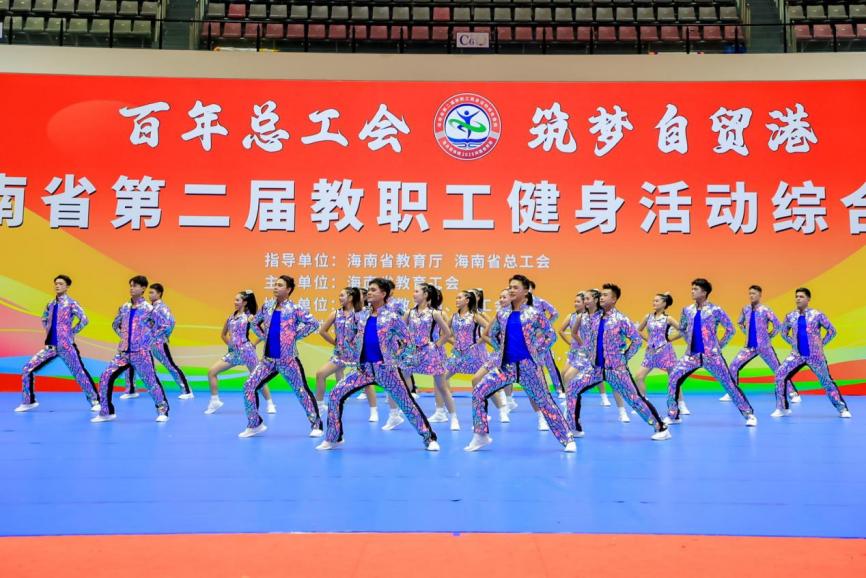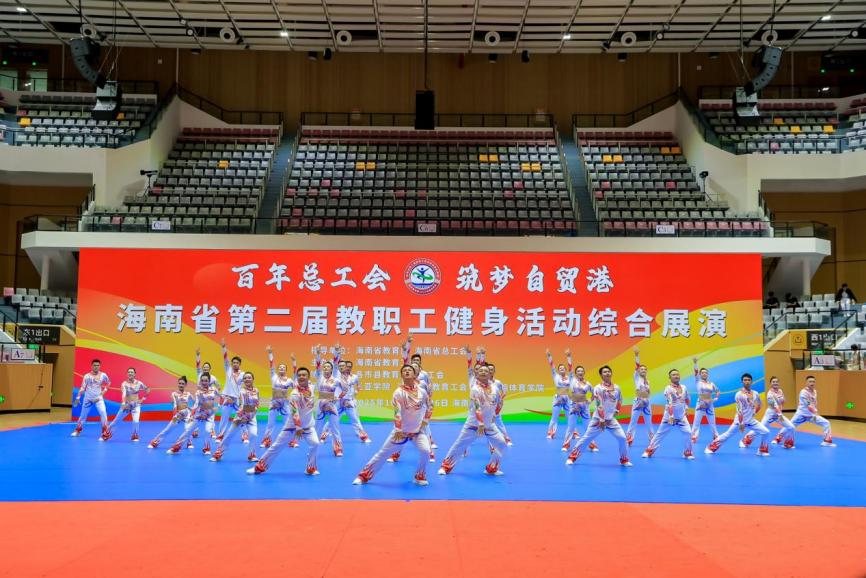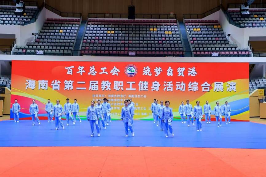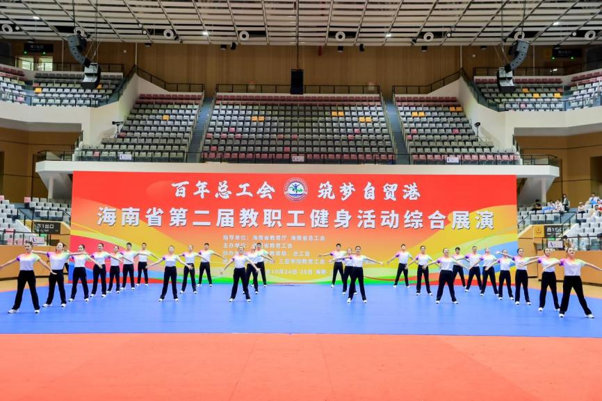 为庆祝中华全国总工会成立100周年,贯彻落实《健康中国行动(2019-2030年)》要求,倡导文明健康生活方式,丰富我省教育系统教职工业余体育文化生活,由省教育厅、省总工会指导,省教育工会主办,各市县教育局、总工会协办,三亚学院、三亚学院教育工会、三亚学院体育学院承办的以“百年总工会,筑梦自贸港”为主题的海南省第二届教职工健身活动综合展演于2025年10月24—26日在三亚学院举行。此次盛会,出席的主要领导有,海南省委教育工作委员会委员、省教育厅党组成员、副厅长,省教育工会主席邢孔政,省教育厅相关处室领导以及三亚学院校领导。