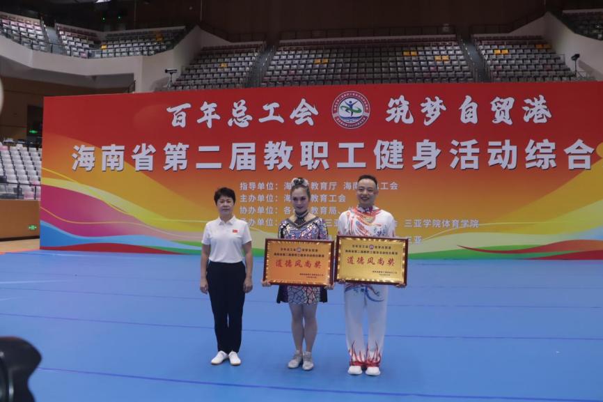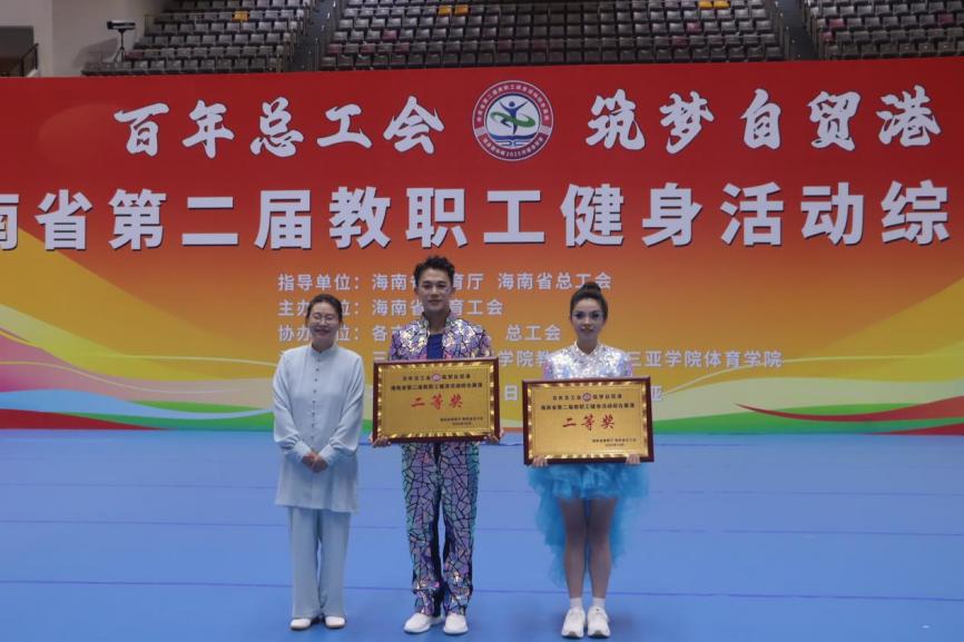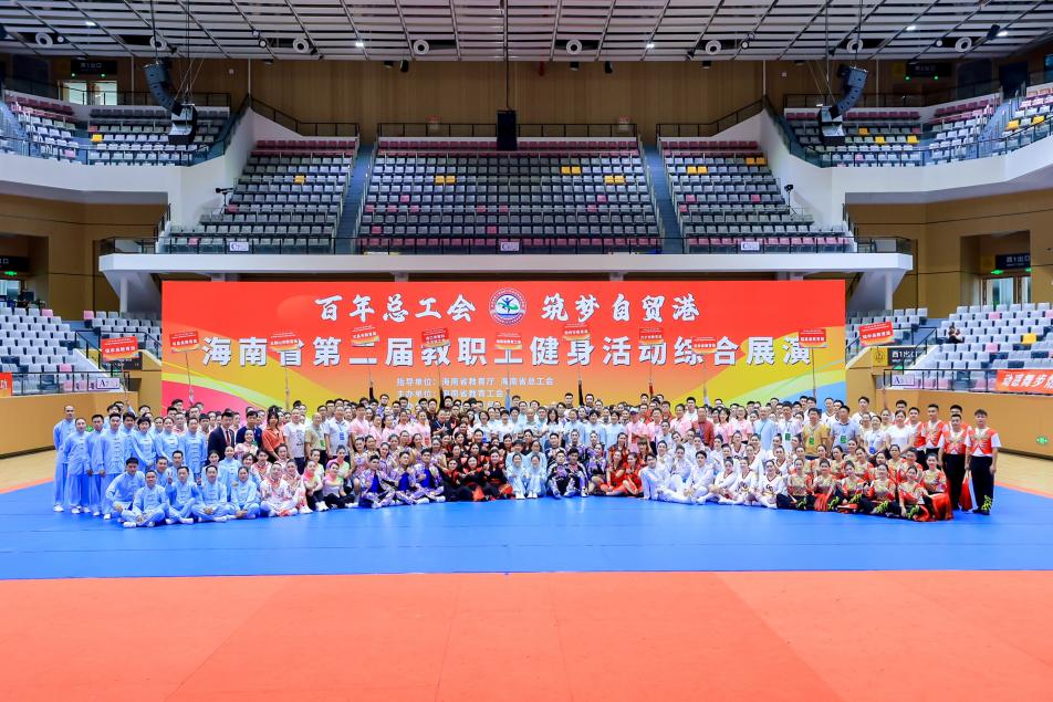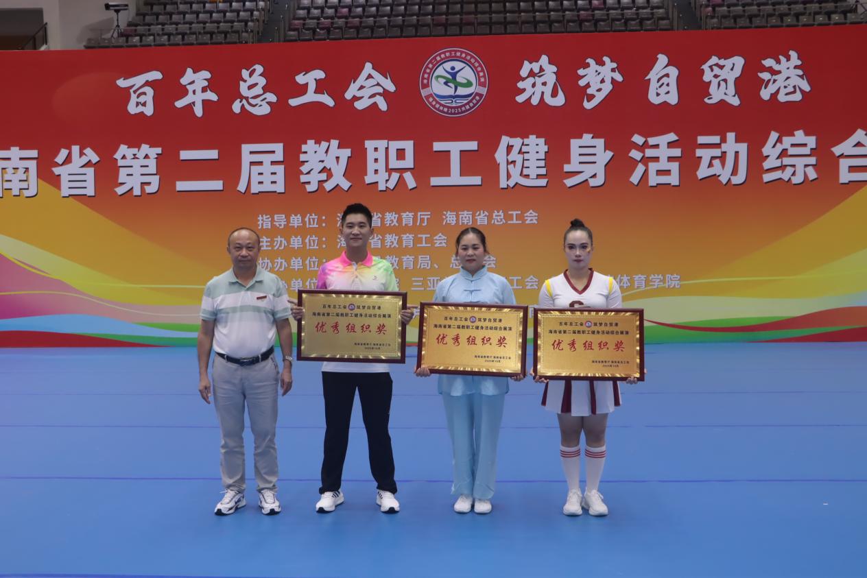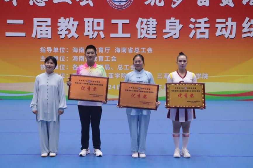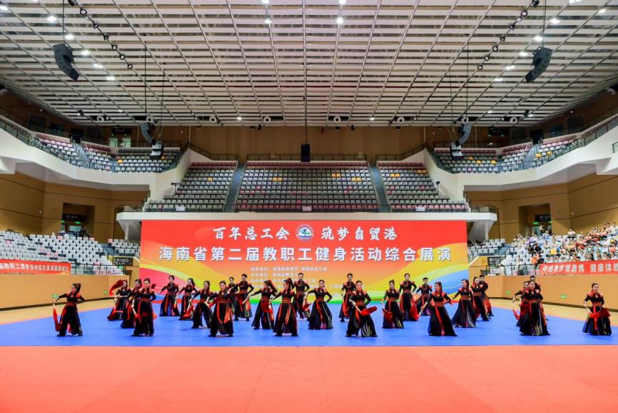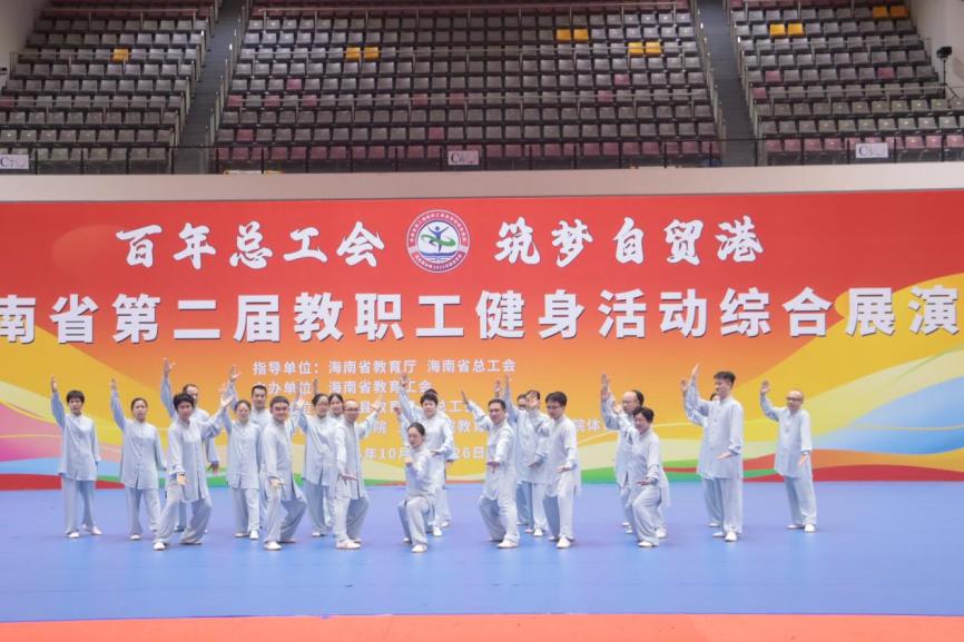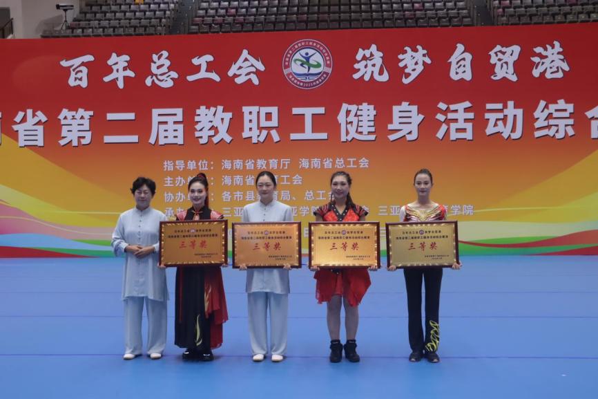 为庆祝中华全国总工会成立100周年,贯彻落实《健康中国行动(2019-2030年)》要求,倡导文明健康生活方式,丰富我省教育系统教职工业余体育文化生活,由省教育厅、省总工会指导,省教育工会主办,各市县教育局、总工会协办,三亚学院、三亚学院教育工会、三亚学院体育学院承办的以“百年总工会,筑梦自贸港”为主题的海南省第二届教职工健身活动综合展演于2025年10月24—26日在三亚学院举行。此次盛会,出席的主要领导有,海南省委教育工作委员会委员、省教育厅党组成员、副厅长,省教育工会主席邢孔政,省教育厅相关处室领导以及三亚学院校领导。