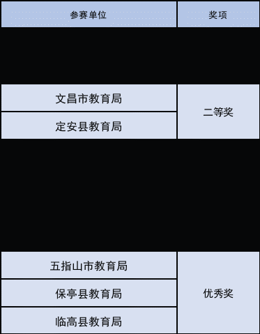 市县组参赛队伍11支,共有一等奖2个,二等奖2个,三等奖4个,优秀奖3个;体育道德风尚奖2个;优秀组织奖3个;