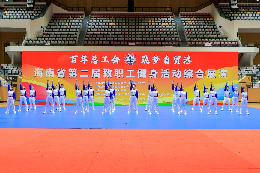 在10月26日海南省第二届教职工健身活动综合展演的收官之日,厅直属组17支队伍展开了最后角逐,将活动气氛推向高潮。本次展演获得关注,图文直播三日内点击量达210万人次,充分展现了全省教职工的健康风采与蓬勃朝气。