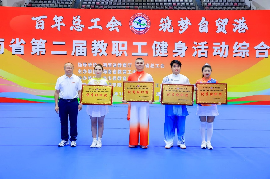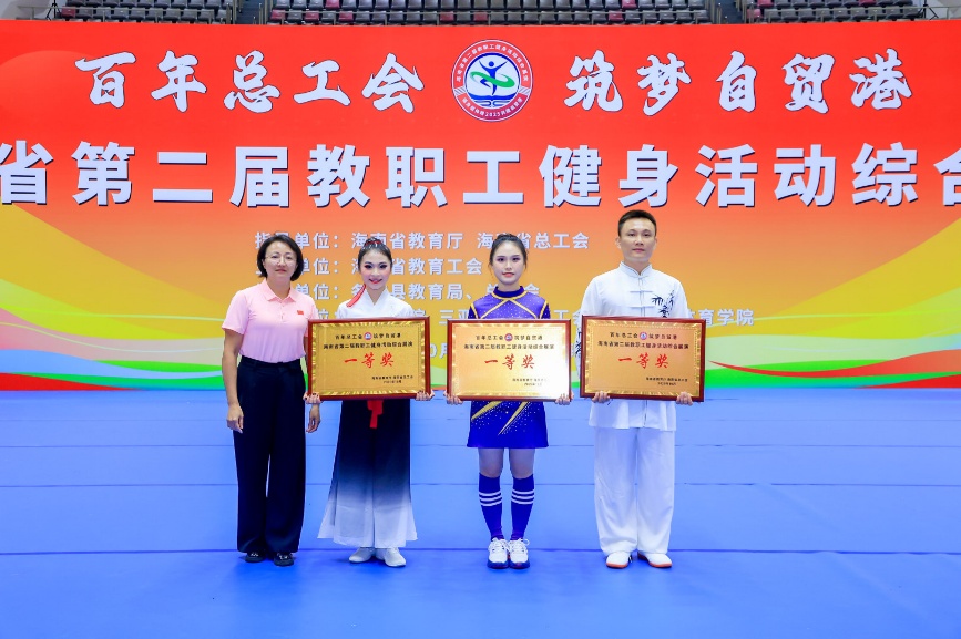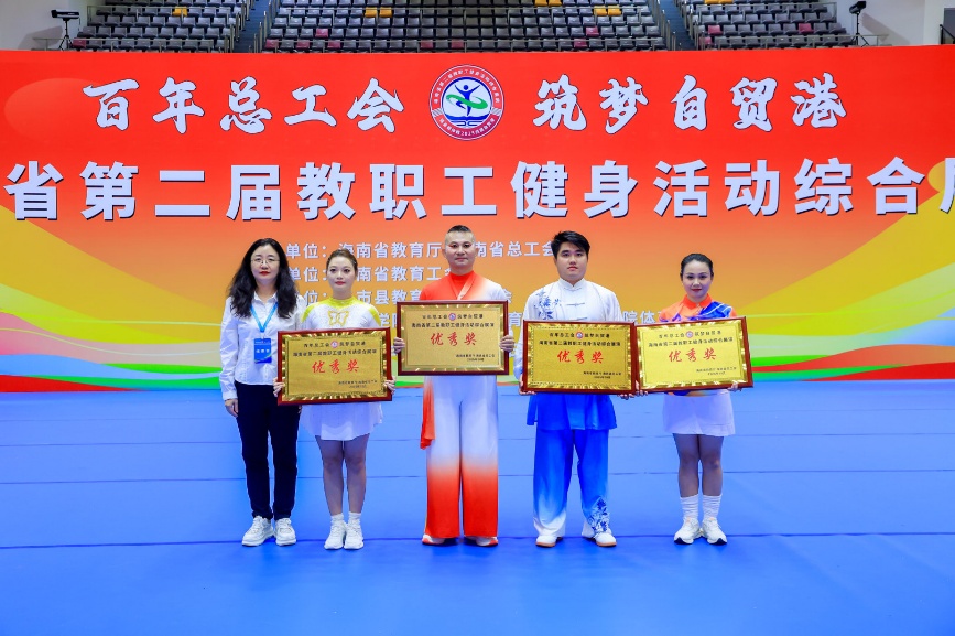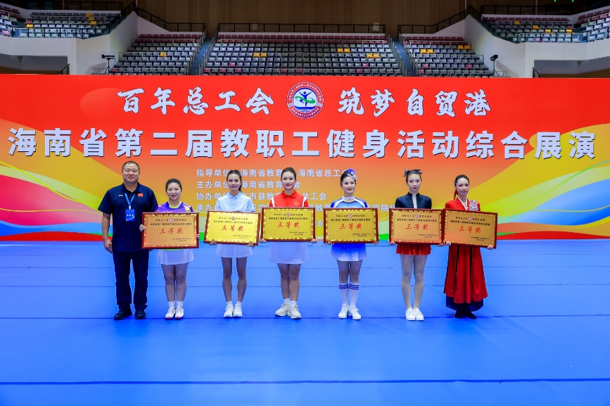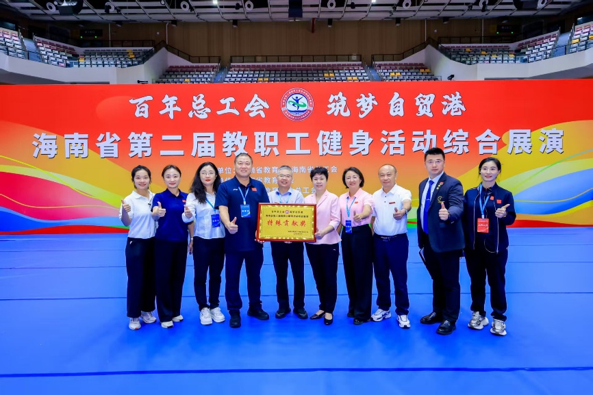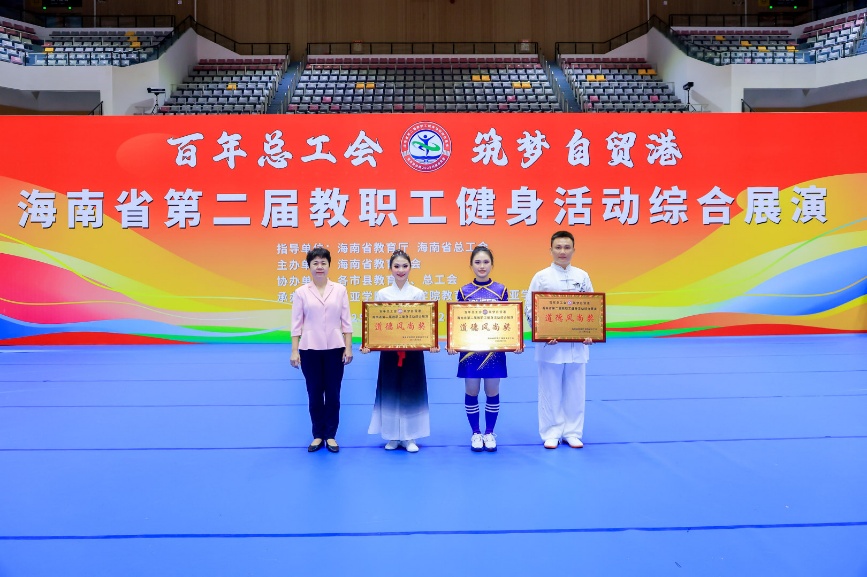 随后,颁发海南省第二届教职工健身活动综合展演特殊贡献奖,获奖单位为三亚学院。