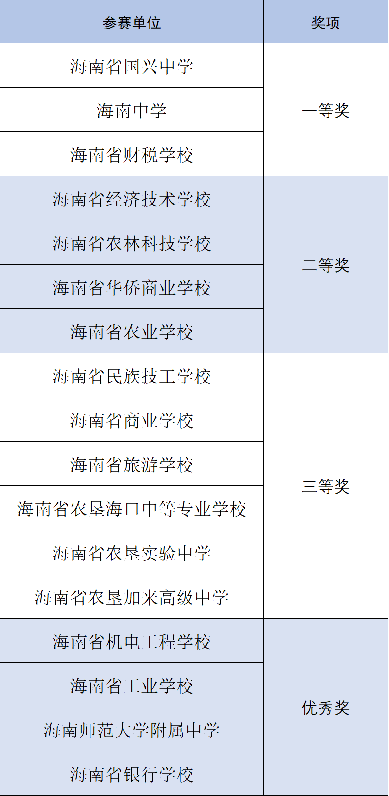 厅直属组共评选出一等奖3个,二等奖4个,三等奖6个,优秀奖4个;体育道德风尚奖3个;优秀组织奖4个。