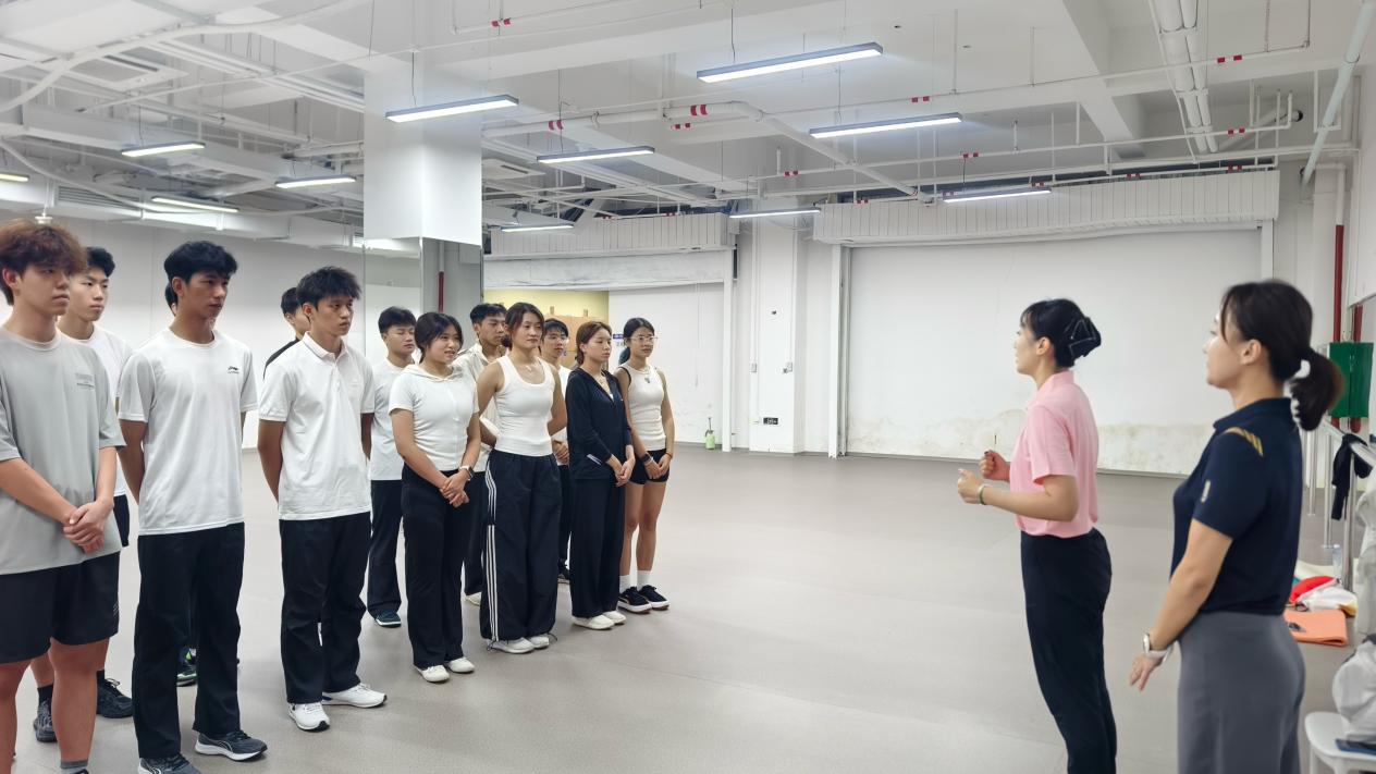 在集训过程中,黄老师以系统严谨的教学设计、生动细致的讲解与专业示范,带领学生从基础动作到成套编排、从技能实训到教学表达,层层递进、讲练结合。课堂上,同学们全神贯注、积极互动,在一次次练习与调整中不断提升专业认知与实操能力。课堂氛围活跃、学习热情高涨,学生纷纷表示“收获颇丰”“特别珍惜这样的学习机会”。