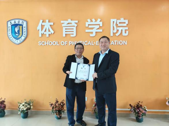 11月29日,体育学院举行行业导师聘任仪式,聘请国际电子竞技委员会中国委员会副主席兼秘书长王国基先生、北京君通电子竞技有限公司董事长袁军先生为学院行业导师。体育学院院领导郝艳龙为两位行业导师颁发聘书。此次双师聘任是体育学院深化电竞专业产教融合的重要举措,为专业发展注入了行业一线的实战力量。