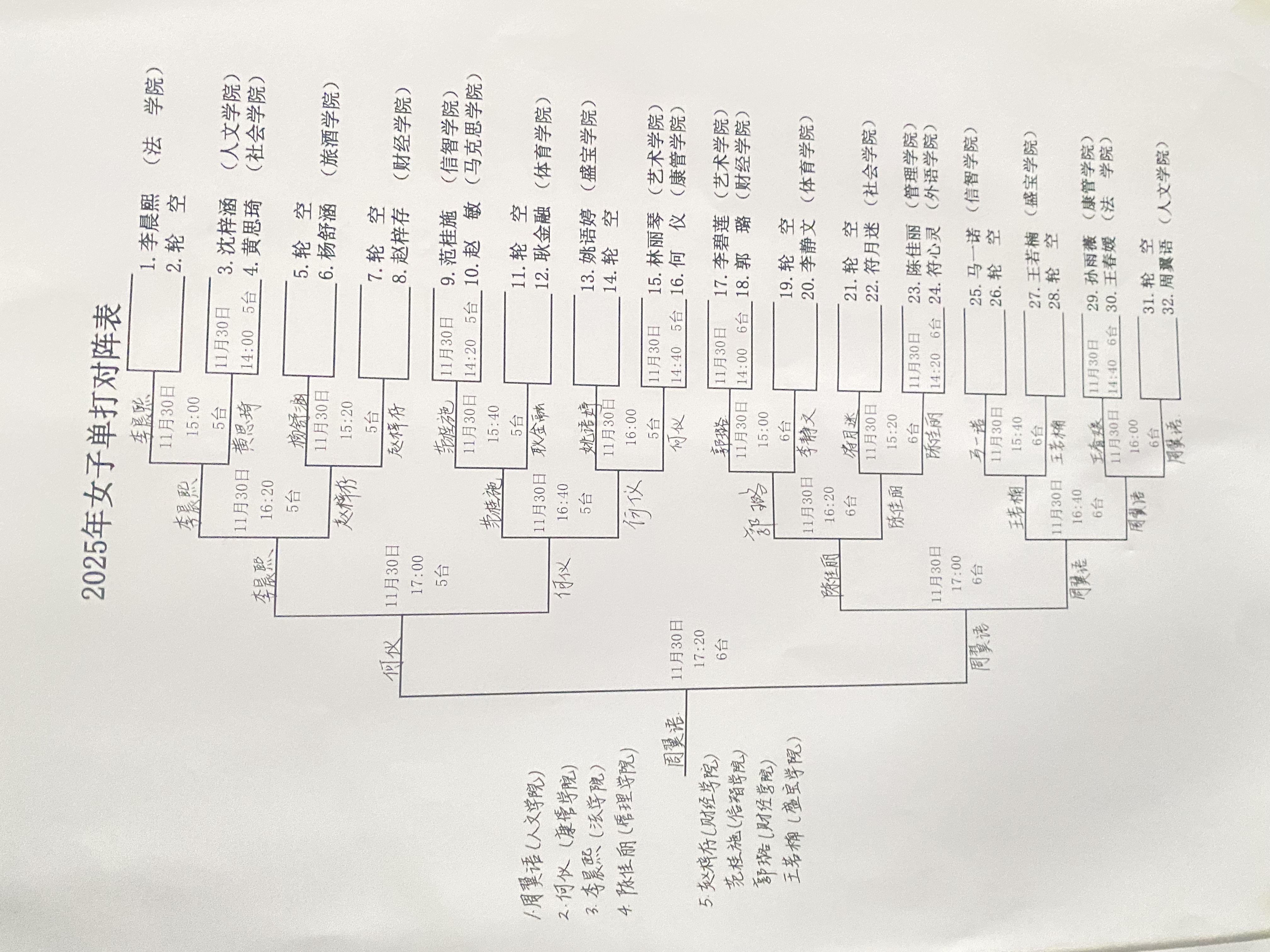 三亚学院2025年体育欢乐节乒乓球(学生组)成绩