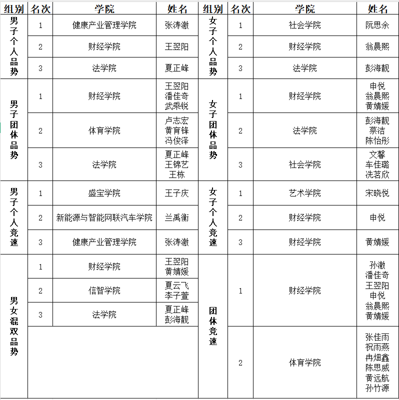 三亚学院2025年体育欢乐节跆拳道比赛成绩
