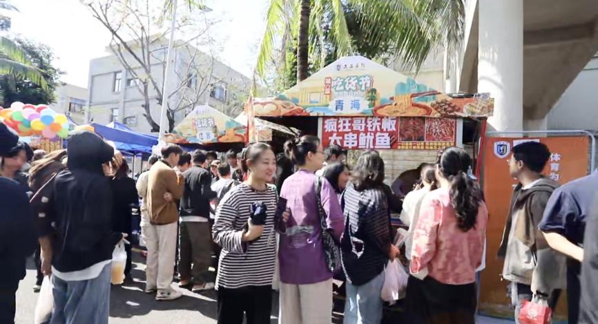 活动自上午11点持续至傍晚,精彩纷呈。现场划分为特色风味、甜品工坊、互动体验等多个主题区域,来自各地的美食汇聚一堂,香气四溢,吸引师生络绎不绝。