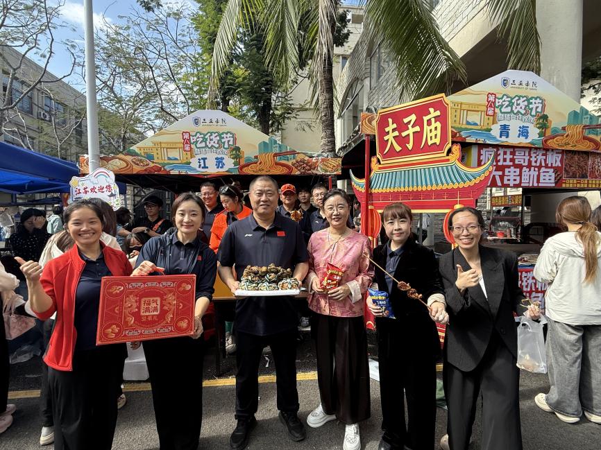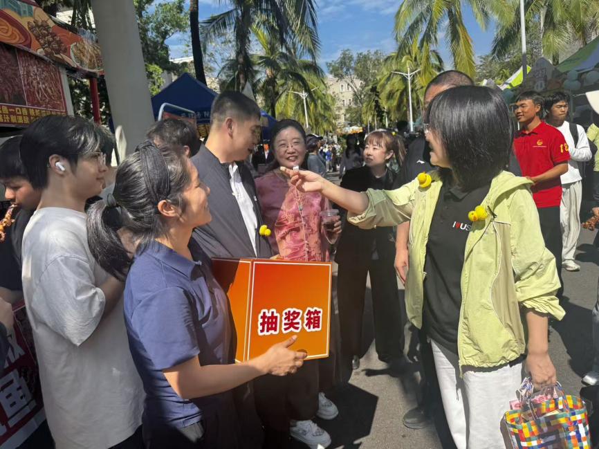 活动现场气氛热烈,校领导与各学院师生穿梭于各色摊位之间,共同品尝风味、交流文化,在美食的纽带下展开了一场别开生面的师生对话。精彩的中场表演将气氛推向高潮,笑语与香气交织,为这个冬日的午后留下了温暖而鲜活的三亚学院记忆。