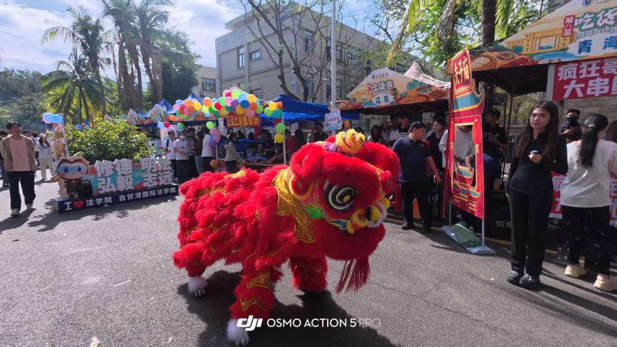 体育学院学子身着传统服饰,带来一场精彩绝伦的舞龙舞狮表演。巨龙翻腾,雄狮跳跃,动作行云流水、刚劲有力。他们将传统技艺与青春活力完美结合,不仅为吃货节增添了浓郁的节日氛围,更让现场观众领略到非遗文化的独特魅力,赢得阵阵喝彩。
