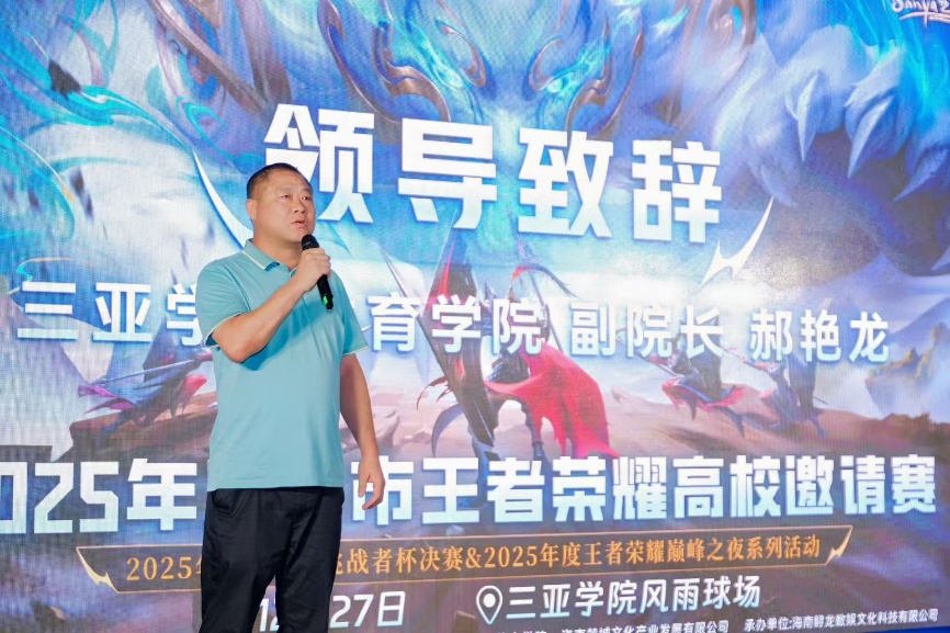 椰风海韵伴电竞,青春赛场竞锋芒。12月27日,由三亚学院体育学院及海南麓城文化产业发展有限公司主办的2025年三亚市王者荣耀高校邀请赛在三亚学院风雨球场火热开启。三亚学院学生处处长孙凡、新能源与智能网联汽车学院院领导林甄、海南麓城文化产业发展有限公司副总经理余梦招、三亚学院体育学院院领导郝艳龙、安娜、王欣,公体部主任李江涛出席活动。