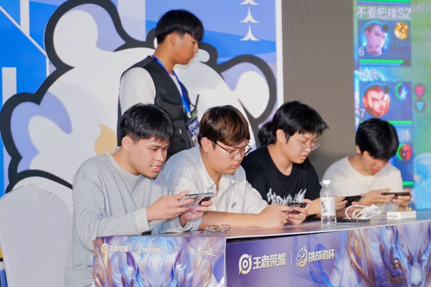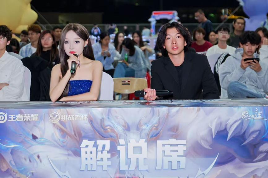 比赛过程中,解说员对赛事进行专业点评,四支战队在峡谷中展开激烈对抗,抢野、团战、推塔等操作接连上演,精彩的对决让现场观众不时发出惊呼与喝彩。