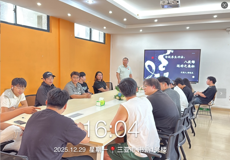 为弘扬中华优秀传统体育文化,推动全民健身与健康生活方式的普及,我院郝艳龙教授于2025年12月29日在体育学院会议室开展了一场以“八段锦运动之奥秘”为主题的学术讲座。本次讲座系统阐述了八段锦的历史渊源、动作特点、健身功效与文化内涵,为武术专业的学生带来了一场兼具学术深度与实践指导的精彩分享。