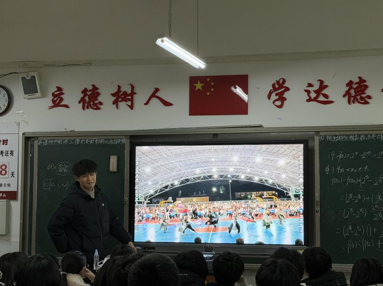 2026年1月30日,体育学院休闲2501班的冯俊泽同学怀揣着激动与忐忑的心情,回到了高中母校河北省晋州市第一中学,参与“把我的大学带回家”寒假社会实践活动。从出发前的反复练习、担心无话可说,到站上讲台后的自信从容、侃侃而谈,他以真诚的分享为学弟学妹们展现了三亚学院的风采,在传递校园故事的同时,也完成了一次属于自己的成长蜕变。