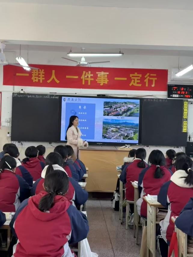 宣讲过程中,杨贺岚同学通过图文影像的直观展示和亲身经历的生动讲述,全方位展现了三亚学院作为热带滨海大学的独特魅力。她从学校的办学特色、休闲体育(康体与抗衰老)专业的培养优势出发,讲述了充满椰风海韵的校园生活、多元的成长平台,让学弟学妹们对这所南方高校有了具象化的认知。当屏幕上闪过学校标志性建筑、热带风情的校园场景时,同学们眼中闪烁的向往,让她真切感受到分享的价值。在互动环节中,她耐心解答专业选择、大学生活适应等问题,现场交流氛围热烈。