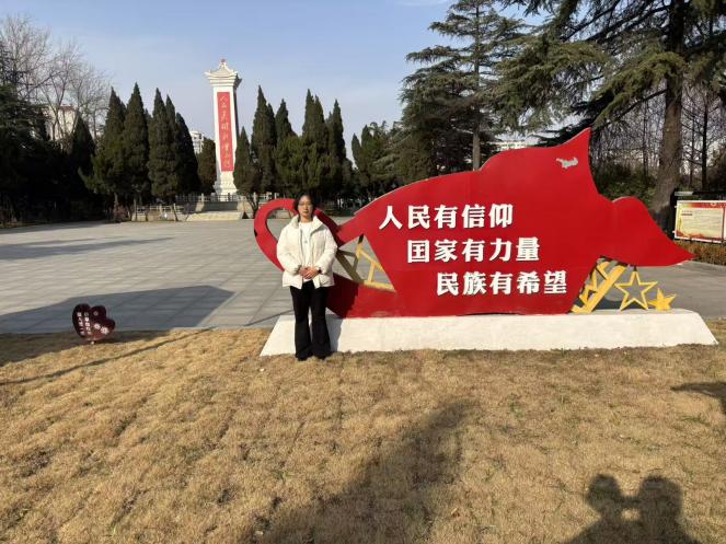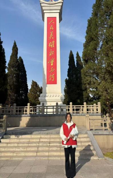 学生预备党员杨佳莹同志则走进商丘市革命烈士陵园开展沉浸式红色教育实践活动。陵园内松柏长青,杨佳莹先在安葬着 108 名淮海战役烈士的革命烈士公墓前肃立默哀、敬献鲜花,随后瞻仰革命烈士纪念碑,认真学习李德合、李玉振、安培彬等革命先烈的英雄事迹。从抗战英雄的浴血奋战到消防战士的逆行牺牲,每一段事迹都让她深受震撼。作为体育专业学子,她更将红色精神与体育精神深度融合,表示先烈们顽强拼搏的精神与体育人挑战极限、永不言弃的信念一脉相承,未来将把这份精神转化为学习训练的奋进动力。