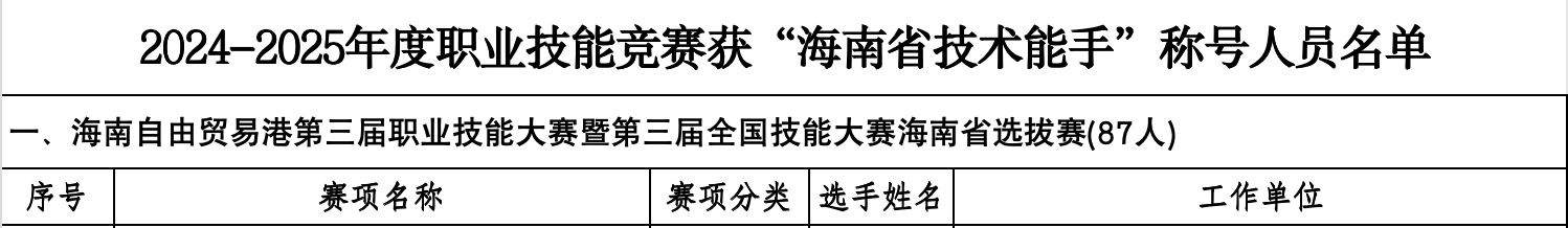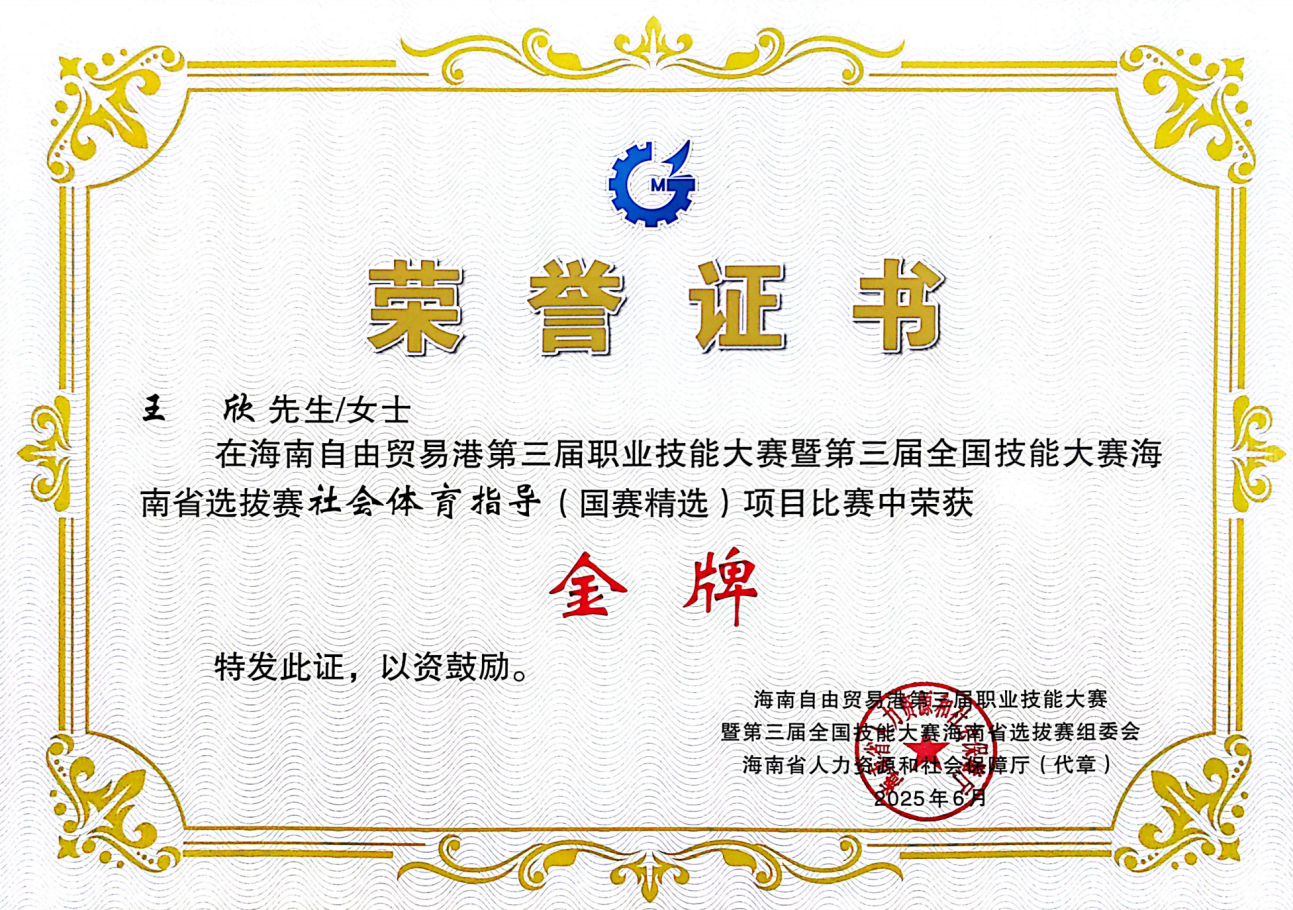 近日,海南省人力资源和社会保障厅、海南省教育厅印发《关于授予2024—2025年度职业技能竞赛优秀选手“海南省技术能手”称号的通知》,对在相关职业技能竞赛中取得优异成绩的选手授予“海南省技术能手”称号。继此前在第三届海南自贸港技能大赛中获社会体育指导(健身)项目省级金牌并受到表彰后,三亚学院教师王欣荣获“海南省技术能手”称号。此次获奖不仅是对其专业能力、实践水平和职业素养的充分肯定,也展现了教师在学校结构性改革和项目制教学推进中的示范引领作用。