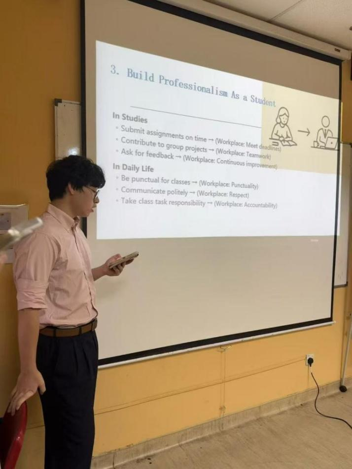 初到拉曼大学,面对全新的教育环境,我迎来了不小的挑战。课堂上没有绝对的“标准答案”,取而代之的是大量的小组合作、资料搜集和全英文PPT汇报。我至今记得前几次上台前的紧张——拿着手机在台下一遍遍纠正发音,登台时甚至一度大脑空白。但勇敢迈出第一步后,迎来的不仅是顺利完成的如释重负,更是老师毫无保留的肯定与中肯的改进建议。