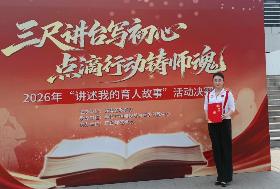 杨旭老师表示,这份荣誉不仅属于个人,更属于学院每一位默默耕耘、潜心育人的教师。接下来,她将以更加饱满的状态投入全国展演准备工作,用真诚的讲述和鲜活的故事展现海南高校教师的育人初心。