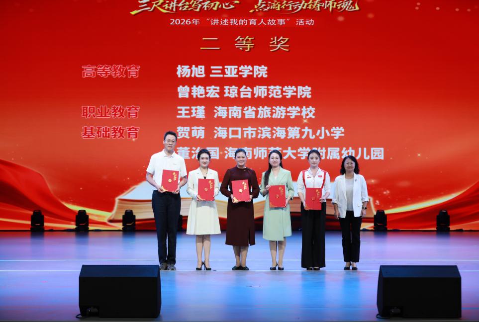 三尺讲台守初心,体旅融合育新人。4月12日,由海南省教育厅主办的2026年“讲述我的育人故事”决赛圆满落幕。旅游与大健康学院教师杨旭凭借扎实的育人实践、真挚的故事表达和富有感染力的现场讲述,从预赛中脱颖而出,成功晋级决赛并荣获省级决赛二等奖。