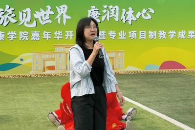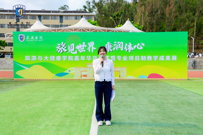 旅游与大健康学院院长李慧致开幕辞,向到场嘉宾、师生致以问候与感谢。她表示,本次嘉年华是学院揭牌后首个重大专业品牌活动,恰逢海南三月三与三亚亚沙会,意义特殊,“旅见世界,康润体心” 的主题精准体现四大专业群融合发展方向。她介绍,旅游、外语、体育、健康与心理四大专业群各有定位、协同赋能,围绕AI时代人的全面健康发展,贴合自贸港建设需求。学院推行 “虚题真做、实题实做、岗课赛证融合” 的项目制教学,构建 “大一筑基、大二强技、大三实战、大四创优” 四年一贯培养体系,各专业在赛事、证书、政企项目、亚沙会服务等方面均取得扎实成果。李慧院长指出,AI无法替代情感联结与健康生命状态,倡议师生走出宿舍、走近山海。她表示,学院将以此次活动为契机,持续优化教学体系,培育适配自贸港的复合型人才,并预祝活动圆满成功。