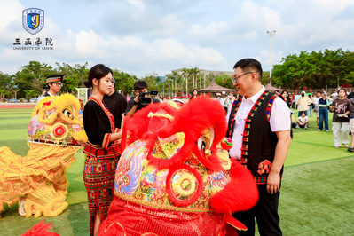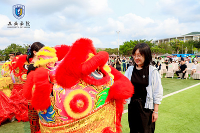 成果展示环节结束后,《瑞狮点睛 聚力新程》仪式正式举行,各位领导上台,手持朱砂笔,为瑞狮点睛。每一笔点睛,都寄托着对学院发展的美好期许,寓意着学院项目制教学改革再启新程、文旅体健融合发展再创辉煌。随后,三亚学院副校长高一兰宣布本次嘉年华正式开幕,现场掌声、欢呼声交织在一起,将活动氛围推向高潮。