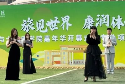 武术表演结束后,来自体育、英语、俄语专业的四位主持人,以中、英、俄三语介绍活动与嘉宾,展现学院 “文旅体健” 一体化办学特色。主持人介绍,本次活动紧扣海南三月三主题,融合四大专业群与思政、教学、文化、实践元素,以师生、亲子共参与的形式,展示项目制教学成果,搭建专业融合与实践成长平台。